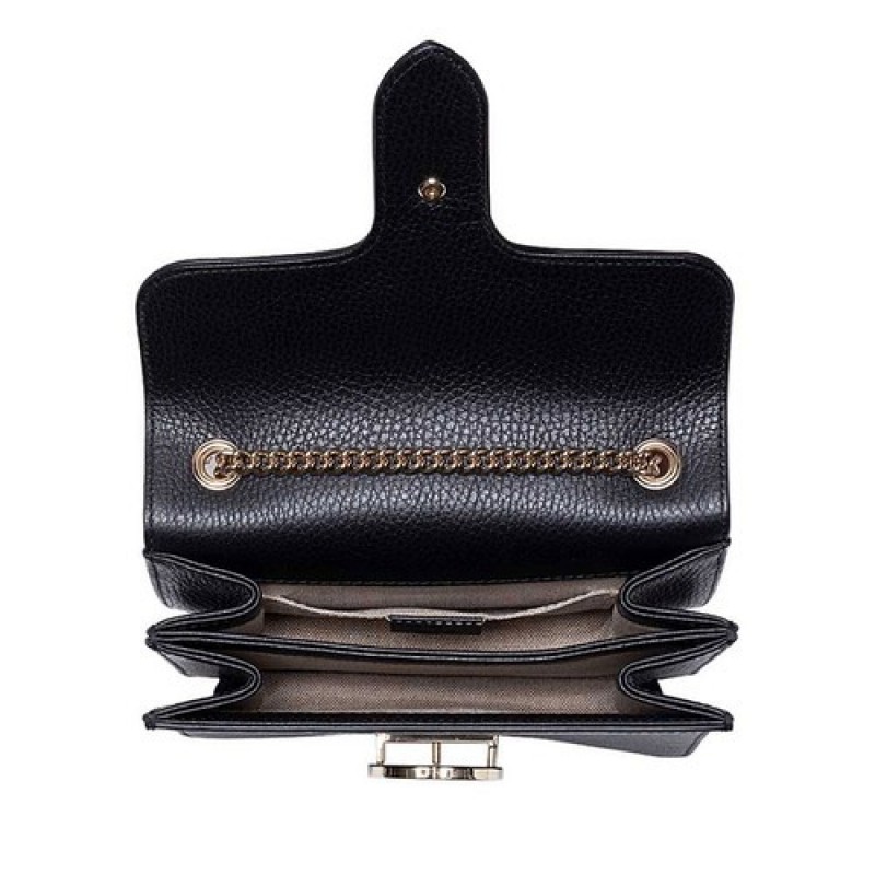 Gucci Interlocking Leather Chain Crossbody Bag, Black Color