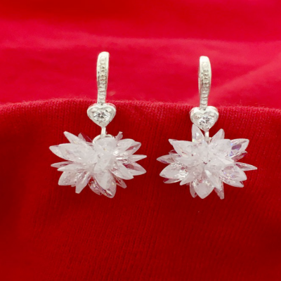 Custom-Style Women's Silver Earrings with White Cobic Stone