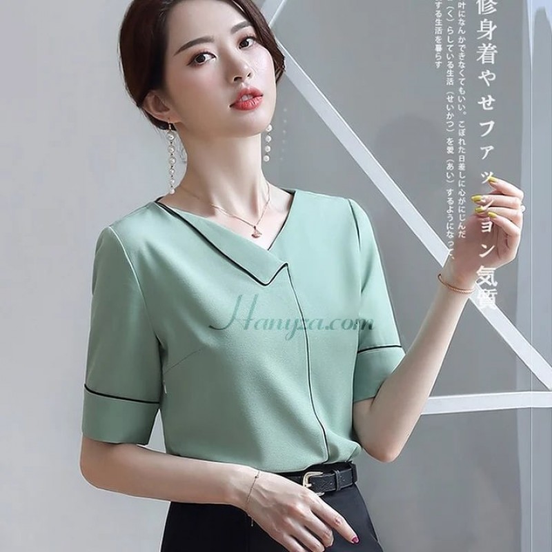 Women's Elegant V-Neck Short-Sleeve Shirt