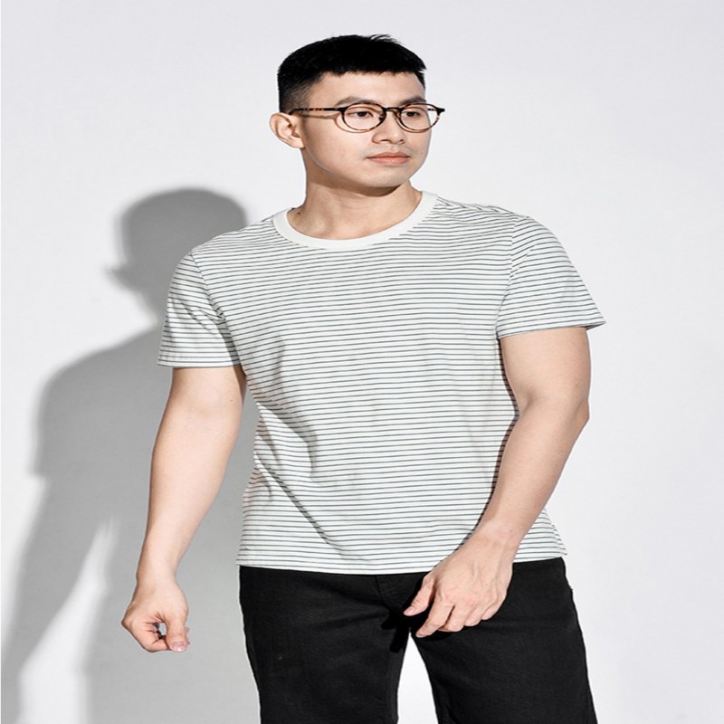 SHORT-SLEEVE COTTON STRIPED FITTED T-SHIRT - 10S20TSH018