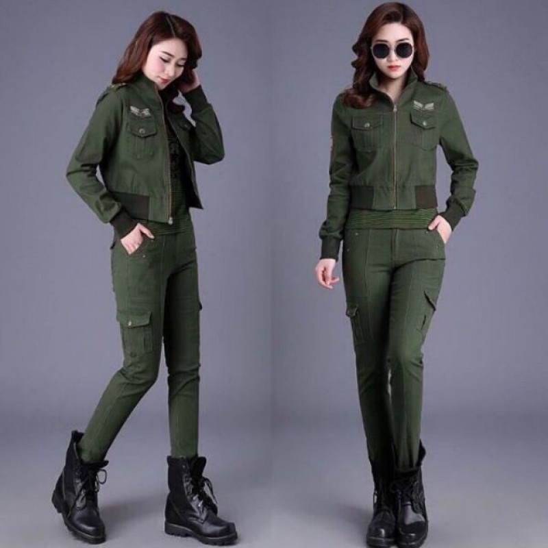 Women's 3-Piece High-Quality Fashion Khaki Military Print Set