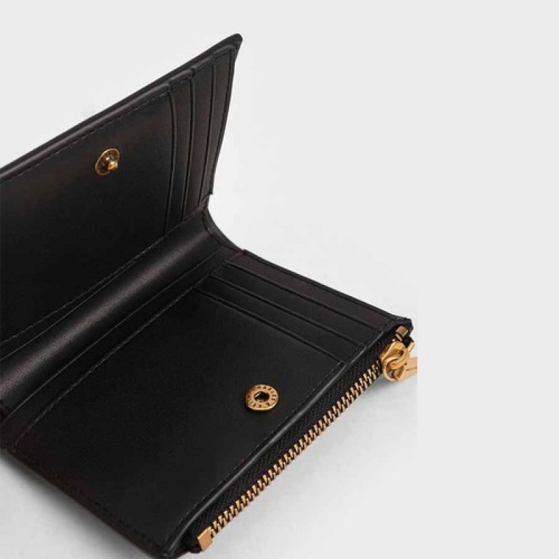 Charles & Keith Mini Top Zip Small Wallet, Black