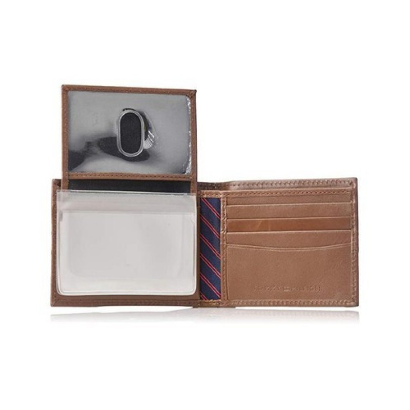 Tommy Hilfiger Men's Leather Thin Sleek Casual Bifold Wallet, Light Tan