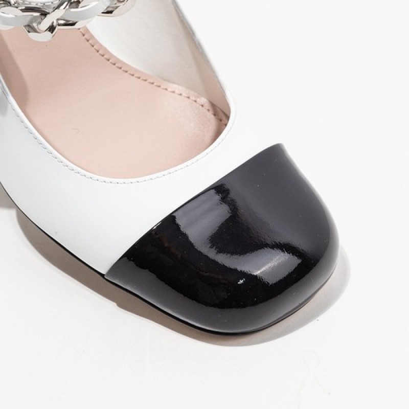 Miumiu High-Heeled Pumps, White Black Color