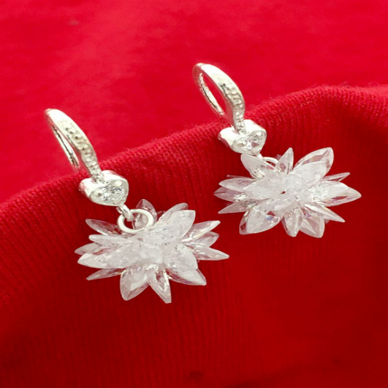 Custom-Style Women's Silver Earrings with White Cobic Stone