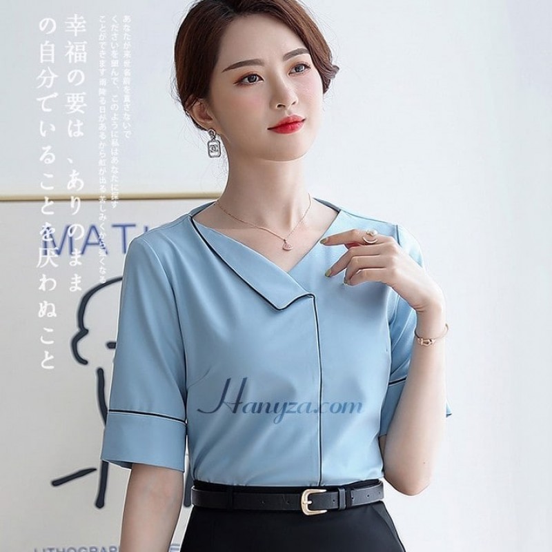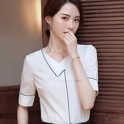 Women's Elegant V-Neck Short-Sleeve Shirt