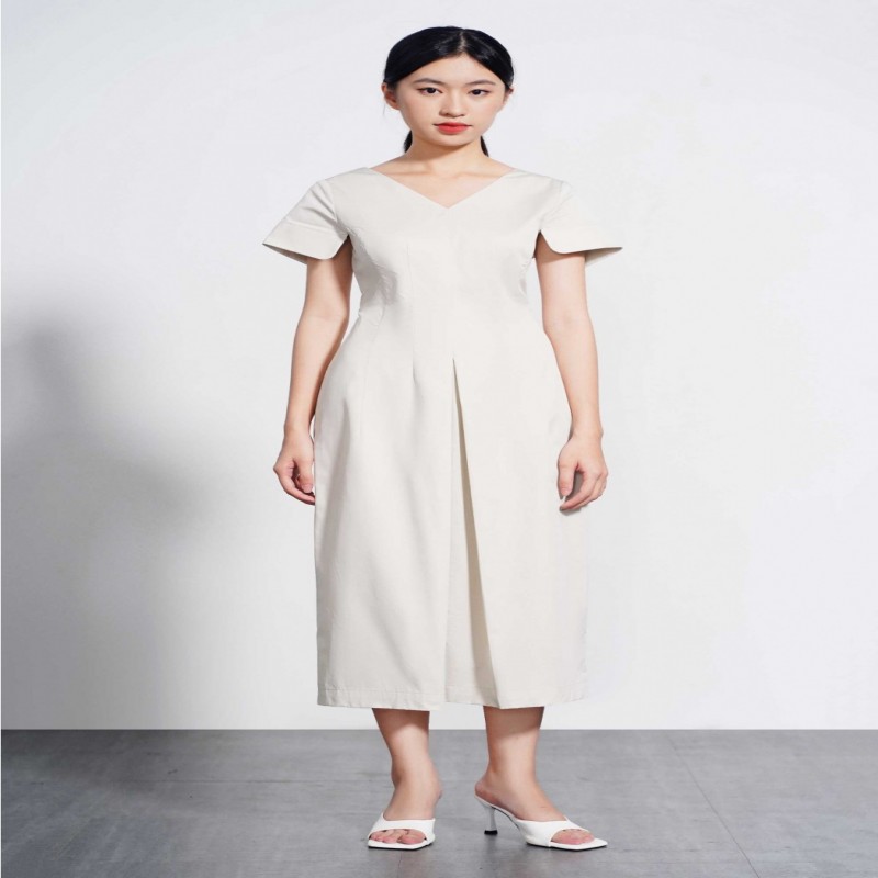 A-LINE SHORT-SLEEVE COTTON FITTED DRESS - 10S21DREW014