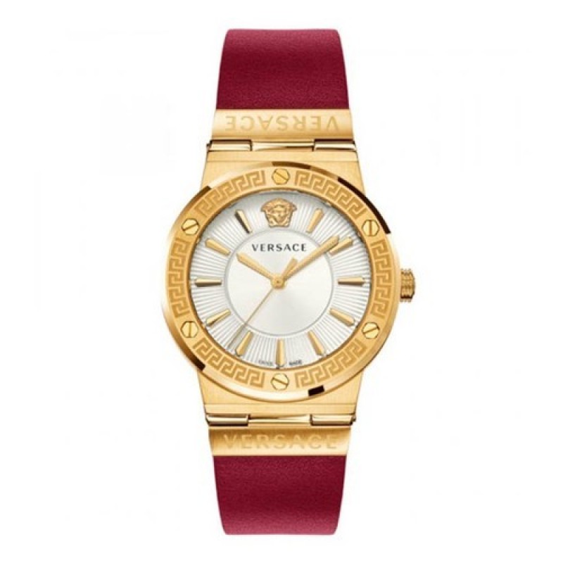 Versace Greca Logo VEVH00420 Leather Women's Watch, Gold-Red Color - PRE-ORDER $1,782 |
