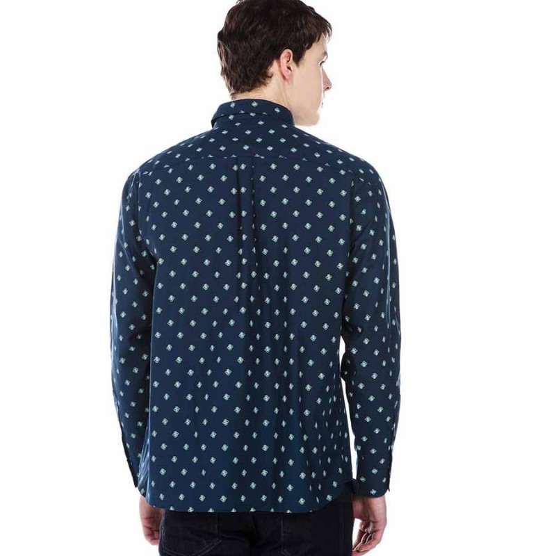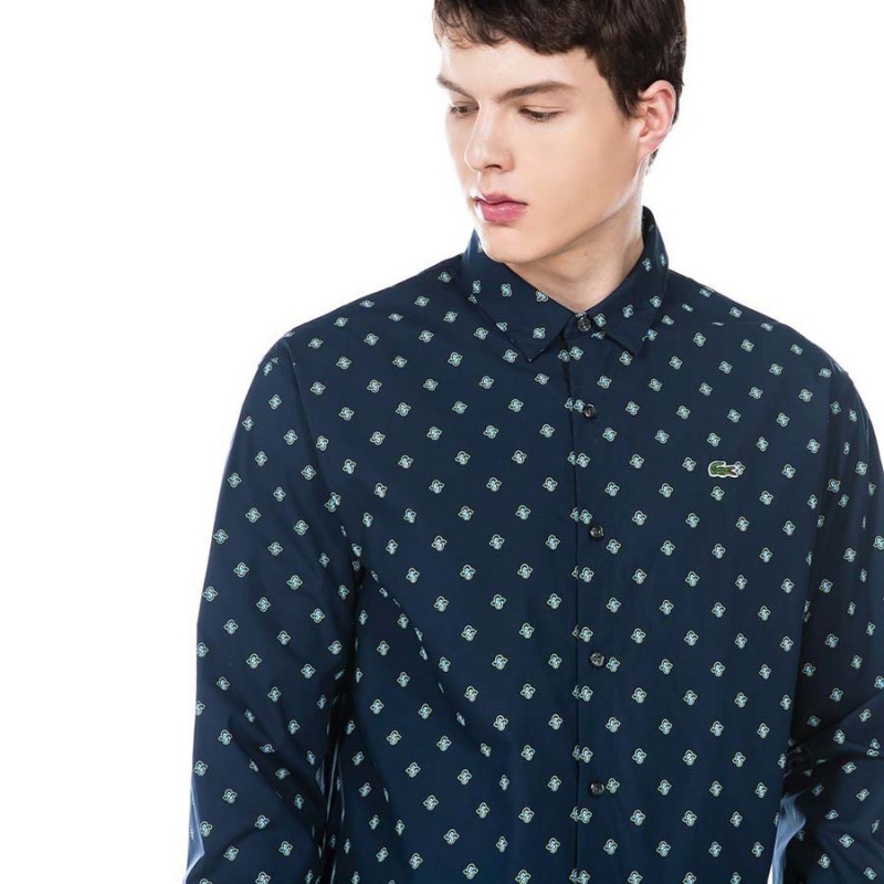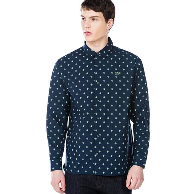 Lacoste Men's Paisley Long Sleeve Shirt, Blue Black Color, Size 39